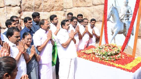 இதேபோன்று, சுதந்திர போராட்ட வீரர் தியாகி தீரன் சின்னமலை நினைவு தினத்தை முன்னிட்டு அவரது நினைவிடத்தில் அதிமுக பொதுச் செயலாளர் எடப்பாடி பழனிசாமி மலர் தூவி மரியாதை செலுத்தினார். அவரைத் தொடர்ந்து முன்னாள் அமைச்சர் தங்கமணி, அதிமுக சட்டமன்ற உறுப்பினர்கள், நாடாளுமன்ற உறுப்பினர்கள் உள்ளிட்டோர் கலந்துகொண்டு தீரன் சின்னமலை திருவுருவப்படத்திற்கு மலர் தூவி மரியாதை செலுத்தினர்.