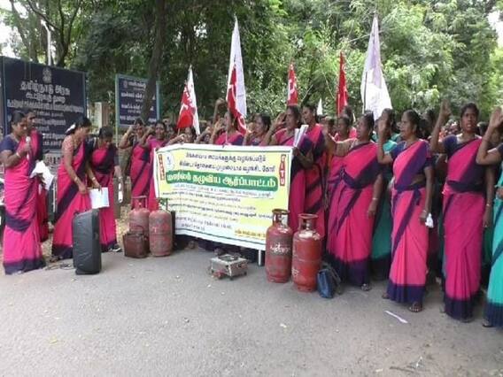 தமிழ்நாடு அங்கன்வாடி ஊழியர்கள் மற்றும் உதவியாளர் சங்கம் சார்பில் மாநிலம் தழுவிய அளவில் பல்வேறு கோரிக்கைகளை வலியுறுத்தி ஆர்பாட்டம் நடைபெற்றது. இதில் தருமபுரி மாவட்ட அங்கன்வாடி ஊழியர் மற்றும் உதவியாளர் சங்கம் சார்பில் மாவட்ட ஆட்சியர் அலுவலகம் அருகே கண்டன ஆர்ப்பாட்டம் நடைபெற்றது. இந்த ஆர்ப்பாட்டத்தில் அங்கன்வாடி மையங்களுக்கு வழங்கும் சிலிண்டர் தொகையை பில்லில் உள்ளது போல், ரூ.1200ஐ, முழு தொகையாக வழங்கிட வேண்டும், காலிப் பணியிடங்களை உடனடியாக நிரப்பிட வேண்டும், ஆறு மாதத்திற்கு ஒருமுறை பணியிட மாறுதல் நடத்த வேண்டும். 10 வருடம் முடித்த உதவியாளர்களுக்கு எந்த வித நிபந்தனையும் இன்றி பதவி உயர்வு வழங்க வேண்டும். கடந்த 2018 ஆம் ஆண்டு அங்கன்வாடி மையப் பணிகளை செய்வதற்காக அரசு வழங்கிய செல்போன்கள் முற்றிலும் பழுதான நிலையிலும் காலாவதியான நிலையிலும் இருப்பதால் தரமான புதிய செல்போன்களை உடனடியாக வழங்க வேண்டும். மேலும் அங்கன்வாடி மையப் பணிகளை தவிர பிறத்துறை பணிகளை செய்ய சொல்லி ஊழியர்களை கட்டாயப்படுத்தக் கூடாது என்பன உள்ளிட்ட பல்வேறு கோரிக்கைகளை வலியுறுத்தி ஆர்ப்பாட்டத்தில் ஈடுபட்டனர். இந்த ஆர்ப்பாட்டத்தில் அங்கன்வாடி மைய ஊழியர் மற்றும் உதவியாளர்கள் 300-க்கும் மேற்பட்டோர் கலந்து கொண்டனர்.