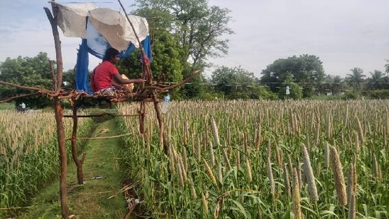 இந்நிலையில் கொரோனா விடுமுறையால், தங்களது பெற்றவர்களுக்கு உறுதுணையாக, காலை, மாலை இரு வேலைகளில் அதிகப்படியான பறவைகள் வருவதால், பள்ளி மாணவர்கள் கம்பங்கொல்லையில் உயரமாக குடில் அமைத்து, சிறு சிறு பிளாஸ்டிக் கேன்களை வைத்து தட்டியும், சத்தமிட்டும் பறவைகளை விரட்டி வருகின்றனர். தொடர்ந்து வெயில் அடிக்கும் போது பறவைகள் வருகை குறைந்து விடும். அந்த நேரங்களில், இணைய தளம் மூலம் பள்ளியில் ஆசிரியர்கள் நடத்தும் பாடங்களை, எழுதுதல், படித்தல் போன்ற படிப்பு தொடர்பான வேலைகளையும் செய்து வருகின்றனர். இந்த பணி மாணவர்களுக்கு பொதுபோக்காகவும், பெற்றோருக்கு உதவியாகவும் இருப்பதாக, மாணவர்கள் தெரிவிக்கின்றனர். இதேப்போல் தருமபுரி மாவட்டம் முழுவதுமுள்ள விவசாயிகளும் கம்பு, சோளக் கதிர்களை கொறிக்க வரும் பறவைகளை சத்தம் போட்டு விரட்டும் பணியில் ஈடுபட்டு வருகின்றனர்.