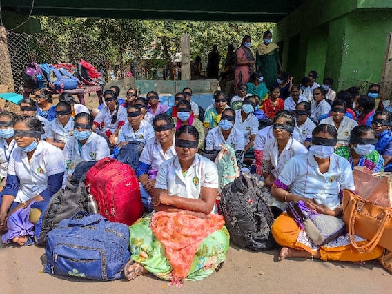 தமிழகத்தில் கடந்த 2020 மார்ச் மாதம் கொரோனா நோய் தொற்று பரவத் தொடங்கியது. பாதிக்கப்பட்ட மக்களுக்கு சிகிச்சை அளிக்க, மருத்துவ பணியாளர் தேர்வு வாரியம் (எம்ஆர்பி) மூலமாகவும், அந்தந்த மாவட்ட நிர்வாகங்கள் சார்பிலும் 10 ஆயிரத்துக்கும் மேற்பட்ட செவிலியர்கள் நியமிக்கப்பட்டனர். மாதம் ரூ.14 ஆயிரம் ஊதியத்தில் பணியமர்த்தப்பட்ட அவர்களுக்கு, ஒவ்வொரு 6 மாத இடைவெளியில் பணி நீட்டிப்பு செய்யும் ஆணை வழங்கப்பட்டது. இந்நிலையில், எம்ஆர்பி மூலம் தேர்வு செய்யப்பட்ட 2,472 செவிலியர்களுக்கு கடந்த டிசம்பர் 31 ஆம் தேதி பணி நீட்டிப்பு ஒப்பந்தம் முடிந்த நிலையில், மீண்டும் நீட்டிப்பு செய்யப்படவில்லை. அவர்களை பணியில் இருந்து விடுவிப்பதற்கான அரசாணை டிசம்பர் 31 ஆம் தேதி வெளியிடப்பட்டது. இந்த அரசாணையை எதிர்த்து தமிழகம் முழுவதும் செவிலியர்கள் போராட்டத்தில் ஈடுபட்டு வருகின்றனர்.