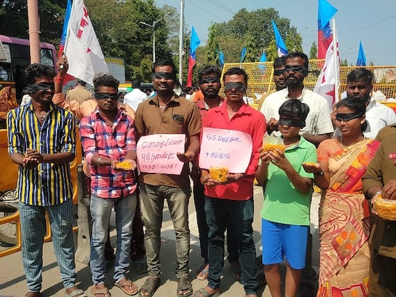 அதனை அடுத்து தலைமை காவலரை ஆயுதப்படைக்கு பணியிட மாற்றம் செய்து சேலம் காவல் ஆணையர் உத்தரவிட்டார். இந்த நிலையில் முறைகேடாக மது பாட்டில்கள் விற்பனை செய்பவர்கள் மீது நடவடிக்கை எடுக்காமல் அமைச்சர் வரை கமிஷன் போகிறது என்று கூறிய காவலர் மீது நடவடிக்கை எடுக்கப்பட்டதாக தெரிவித்த இந்திய ஜனநாயக வாலிபர் சங்கத்தினர், சேலம் மாநகர் முழுவதும் நடைபெறும் கள்ளத்தனமான மது விற்பனை மற்றும் கஞ்சா, குட்கா உட்பட்ட போதை பொருட்களை விற்பனை செய்வதை தடுக்காத காவல்துறையினரைக் கண்டித்து இன்று கண்டன ஆர்ப்பாட்டத்தில் ஈடுபட்டனர். அப்போது மிக்சர் சாப்பிட்டும் கண்களை கருப்புத் துணியால் கட்டிக் கொண்டும் நூதன முறையில் போராட்டத்தில் ஜனநாயக வாலிபர் சங்கத்தினர் ஈடுபட்டதால் பரபரப்பு ஏற்பட்டது.