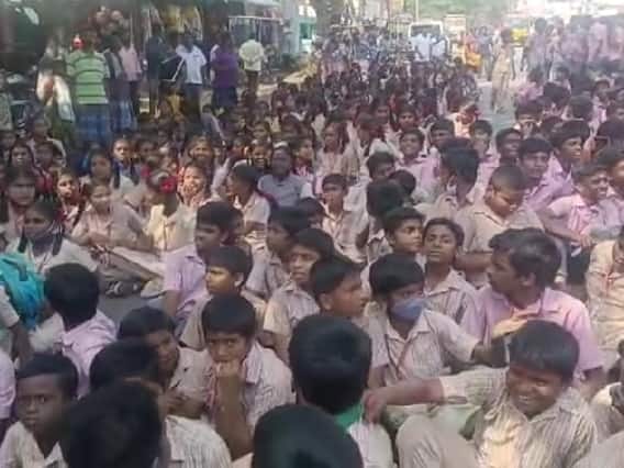 இருப்பினும் ஆசிரியர் இல்லாமல் பள்ளிக்குச் செல்ல மாட்டோம் என்று கூறி மாணவர்கள் கொண்டபநாயக்கன்பட்டி சந்தை பகுதியிலேயே திரண்டு இருந்தனர்.