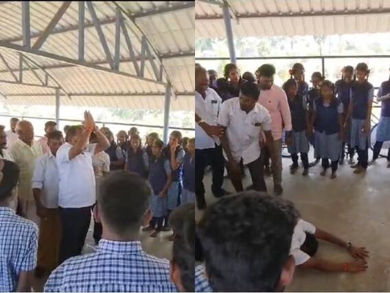 பின்னர், பள்ளி நிர்வாகம் சார்பில் நடத்தப்பட்ட நிகழ்ச்சியில் ஏற்பட்ட வாக்குவாதத்திற்கு மன்னிப்பு கேட்கும் விதமாக சேலம் மேற்கு சட்டமன்ற உறுப்பினர் அருள், திமுக நிர்வாகியின் செயலுக்காக மாணவர்கள் மத்தியில் காலில் விழுந்து மன்னிப்பு கேட்டார். இதனால் அங்கு சிறிது நேரம் பரபரப்பு ஏற்பட்டது. மேலும் மாணவர்கள் இதைப் பற்றி நினைக்காமல் முழுமையாக படிப்பில் கவனம் செலுத்த வேண்டும் எனவும் சேலம் மேற்கு சட்டமன்ற உறுப்பினர் அருள் மாணவர்களிடம் கோரிக்கை வைத்தார்.