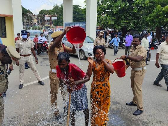 மற்றொரு நிகழ்வில் சேலம் மாவட்டம் மாமாங்கம் பகுதியில் சதீஷ் குமார் என்பவர் கஞ்சா விற்பனை செய்ததாக பொதுமக்கள் தர்மஅடி கொடுத்து பிடித்து காவல்துறையிடம் ஒப்படைத்தனர். அவரிடம் நடத்திய விசாரணையில் கஞ்சா மொத்த வியாபாரிகளிடம் இருந்து வாங்கி வந்து பல்வேறு பகுதிகளுக்கு விற்பனை செய்தது தெரியவந்தது. இது தொடர்பாக சேலம் கருப்பூர் காவல்துறையினர் வழக்குப்பதிவு செய்து, பிடிபட்ட சதீஷ்குமாரிடம் கஞ்சா மொத்த வியாபாரிகள் குறித்து காவல்துறையினர் விசாரணை மேற்கொண்டு வருகின்றனர். இந்த நிலையில் சேலம் அரசு மோகன் குமாரமங்கலம் மருத்துவமனையில் சதீஷ் குமாருக்கு கஞ்சா விற்பனை செய்த கனகராஜ் என்பவர் உடல்நல பாதிக்கப்பட்டு சேலம் அரசு மருத்துவமனையில் அனுமதிக்கப்பட்ட சிகிச்சை பெற்று வந்த நிலையில், இன்று கருப்பூர் காவல்துறையினர் விசாரணைக்காக அழைத்து சென்றனர். இந்த நிலையில் உடல்நலம் பாதிக்கப்பட்டு அரசு மருத்துவமனையில் சிகிச்சையிலிருந்த தனது சகோதரரை வலுக்கட்டாயமாக காவல்துறையினர் அடித்து அழைத்து சென்றதாக கூறி, கனகராஜியின் சகோதரிகளான உமா, சுகன்யா ஆகிய இருவரும் சேலம் மாவட்ட ஆட்சியர் அலுவலகத்திற்கு வருகை தந்து காவல்துறையிடம் தனது சகோதரரை விடுவிக்க நடவடிக்கை எடுக்ககோரி முறையிட்டனர். பின்னர் இருவரும் காவல்துறையினர் காலில் விழுந்து கதறிஅழுதனர்.உடனே காவல்துறையினர் இருவரையும் மனு வழங்க ஆட்சியர் அலுவலகத்திற்குள் அழைத்து சென்றனர்.