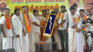 வேல் கொடுத்துள்ளார். தனியாக கொடுத்தால் பங்கு போட்டால் காலேஜ்-ல் எடுத்த போட்டோ இன்னும் பயன்படுத்தி வருகிறார். வேல் யாத்திரை மூலம் அமைச்சர் முருகன் தமிழகம் முழுவதும் எழுச்சியை ஏற்படுத்தினார். சிபி ராதாகிருஷ்ணன் ரத யாத்திரை மூலம் கட்சியை வளர்த்தார். இந்த பொறுப்பை நம்பி கொடுத்துள்ளனர். தேர்தலில் எப்படி நடக்க வேண்டும். கூட்டணி பற்றி விமர்சனம் செய்தால் வேறு மாதிரி போய்விடும். நம் கூட்டணி இறுதியான உறுதியான கூட்டணி என்பதை மறந்து விடக் கூடாது. இரட்டை இலைக்கு மேலே தாமரை மலர்ந்தே தீரும். எசந்தர்ப்பவாத கூட்டணி திமுக தலைமையில் அமைந்துள்ளது. எங்களது நியாயமான, நேர்மையான ஊழலற்ற கூட்டணி என்பதை சொல்லிக் கொள்கிறோம். தேசிய ஜனநாயக ஆட்சி வருவதற்கு தயாராக இருக்க வேண்டும். பல தியாகங்களால்தான் பாரதிய ஜனதாக் கட்சி வளர்ந்துள்ளது. அந்த தியாகத்திற்கு பெருமை சேர்க்க அனைத்து நிர்வாகிகளும் ஒன்றுபட்டு செயல்பட்டு பூத் அளவில் பணியைத் தொடங்க வேண்டும். பூத் செம்மைபடுத்தினால் நிச்சயம் வெற்றி பெற முடியும். எத்தனை தொகுதிகள் எந்த இடம் என்பதை அமித்ஷா, இபிஎஸ் தான் முடிவு செய்வார்கள். என்னுடைய அதிகாரம் என்பது தொண்டர்களை பாதுகாப்பது என்பதுதான். கட்சியை வளர்க்க வேண்டும் என்பது தான் என்னுடைய நிலை. எனக்கு மேலே இருக்கிற தலைமை எடுக்கும் முடிவை ஏற்பதுதான் கட்சி நிர்வாகிகளின் கடமை என்பதை உணர்ந்து செயல்பட வேண்டும் என்றார்.