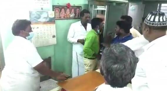 தொடர்ந்து ஏலதாரர்கள் வராததால், மதியம் 12.30 மணிக்கு ஏலம் நடத்த ஏற்பாடுகள் செய்யப்பட்டது. ஏற்கனவே டெபாசிட் தொகையை செலுத்திய அ.தி.மு.க. 6ஆவது வார்டு பெண் உறுப்பினரின் மகன் பாரதி என்பவர் ஏல தொகைக்கு வழங்கப்பட்ட வங்கி காசோலை குறித்து கேள்வி எழுப்பியதுடன், வேறு பெயருக்கு மாற்ற வேண்டுமென கேட்டுள்ளார். அப்போது அங்கு பணியில் இருந்த பேரூராட்சி அலுவலகத்தில் பணியாற்றும் இளநிலை உதவியாளர் சந்தோஷ் என்பவர் அப்படி மாற்ற முடியாது என மறுப்பு தெரிவித்துள்ளார். அப்பொழுது அதிமுகவே சேர்ந்த பாரதி மற்றும் அவருடன் வந்த அதிமுகவினர், ஊழியரிடம் வாக்குவாதத்தில் ஈடுபட்டனர்.