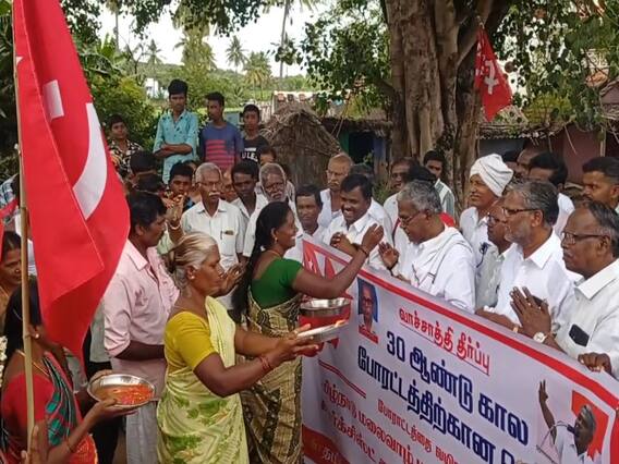 வாச்சாத்தி மேல்முறையீடு வழக்கு தள்ளுபடி செய்து தீர்ப்பு வெளியான நிலையில், பாதிக்கப்பட்ட மக்களுக்காக போராடிய நிர்வாகிகளுக்கு கிராமமக்கள் உற்சாக வரவேற்பளித்தனர்.