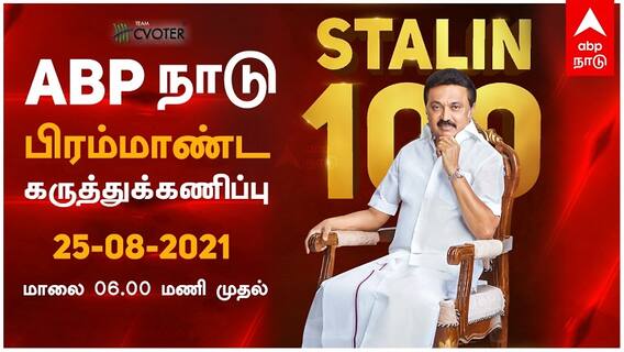 திமுக அரசின் 100 நாள் ஆட்சி எப்படி? ABP நாடு மற்றும் சி-வோட்டர் நடத்திய பிரம்மாண்ட கருத்துக் கணிப்பு முடிவுகள் நேரலை இன்று மாலை 6 மணி முதல் உங்கள் ABP நாடு யூட்யூப் சேனலில்....