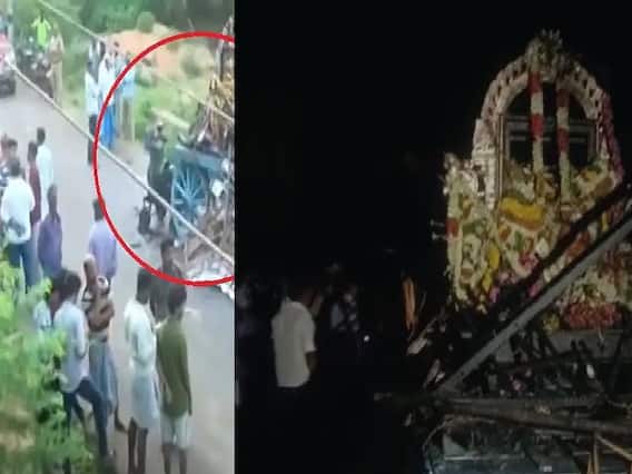 தஞ்சாவூரில் தேரோட்டத்தின் போது உயர் மின் அழுத்த கம்பியில் தேர் உரசியதால் மின்சாரம் பாய்ந்து 11 பேர் உயிரிழந்தனர். தேர் திருவிழா நிறைவடைந்து, அப்பர் கோயிலுக்கு திரும்பும்போது உயர் மின்சார கம்பியில் தேர் உரசியதால் இந்த விபத்து நிகழ்ந்துள்ளது. 11 பேர் உயிரிழந்த நிலையில் மேலும் 13 பேருக்கு தீவிர சிகிச்சை அளிக்கப்பட்டு வருகிறது.