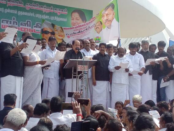உறுதிமொழி ஏற்ற ஓ.பன்னீர் செல்வம் மற்றும் அதிமுகவினர்