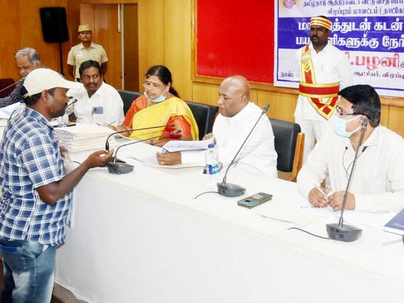 அதன் தொடர்ச்சியாக இன்றைய தினம், 140 நபர்கள் சுய தொழில் புரிவதற்கு மானியத்துடன் கூடிய கடனுதவி வேண்டி விண்ணப்பித்திருந்த நிலையில், அவர்களுக்கு நேர்காணல் நடத்தப்பட்டது. இந்நேர்காணலில், விண்ணப்பதாரரின் முழு விபரம், தொழில் அனுபவம், சான்றிதழ் போன்றவை சரிபார்க்கப்பட்டது என மாவட்ட ஆட்சியர் டாக்டர் சி.பழனி, அவர்கள் தெரிவித்தார். மேலும் இக்கூட்டத்தில், தாட்கோ மாவட்ட மேலாளர் மணிமேகலை, மாவட்ட முன்னோடி வங்கி மேலாளர் ஹரிஹரசுதன் உட்பட பலர் கலந்துகொண்டனர்.