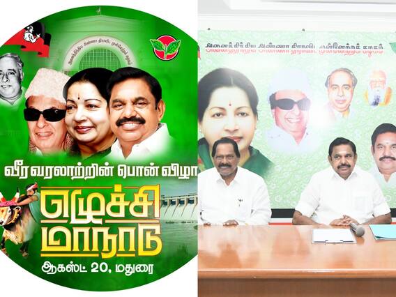 மதுரையில் ஆகஸ்ட் 20ம் தேதி நடக்கும் அதிமுக மாநில மாநாட்டிற்கான இலச்சினை வெளியிட்டது. இன்று சென்னை ராயப்பேட்டையில் உள்ள அதிமுக தலைமை அலுவலகத்தில் நடைபெற்ற மாவட்டச் செயலாளர்கள் கூட்டத்தில் எடப்பாடி பழனிசாமி இலச்சினையை வெளியிட்டார்.