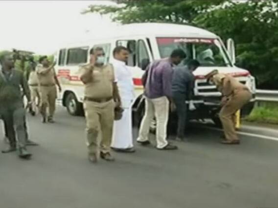 முன்னும், பின்னும் காவல்துறை வாகனங்கள் பாதுகாப்போடு சென்று கொண்டிருந்த ஆம்புலன்ஸ் வாகனம் சிறிது நேரத்தில் விபத்தில் சிக்கியது. இதில் வாகனத்தின் முன்பகுதியில் சிறிது சேதம் ஏற்பட்டது. இந்த விபத்தால் அப்பகுதியில் பெரும் பரபரப்பு ஏற்பட்டது. ஆம்புலன்ஸ் வாகனம் பிரேக் போட்ட போது முன்னால் சென்று கொண்டிருந்த போலீஸ் வாகனம் மீது மோதியது. இதனைத் தொடர்ந்து காவல்துறை அதிகாரிகள் இறங்கி விசாரணை நடத்தினர். பின்னர் சிறிது நேரத்தில் கழித்து அங்கிருந்து கிளம்பிய ஆம்புலன்ஸ் வாகனம் மாணவியின் சொந்த ஊருக்கு வந்து சேர்ந்தது.