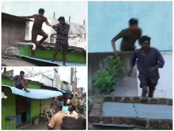 மேலும் அப்போது டாஸ்மாக் மதுபான கடையில் மது அருந்தி கொண்டிருந்த வாலிபரை காவலர்கள் மிரட்டும் பாணியில் அமைத்துள்ளனர். இதனால் பயந்த போதை வாலிபர் காவலர்கள் வாலிபர் அருகே சென்றதும் ஓட்டம் பிடித்தார். இதனை கண்ட காவல்துறையினர் போதை வாலிபரை பின் தொடர்ந்து சென்றனர். அதனைத்தொடர்ந்து போதை வாலிபர் எங்கு செல்வது என்று தெரியாமல் நகர் பகுதியில் உள்ள பழைய பேருந்து நிலையம் மற்றும் பள்ளிகூடத் தெரு பகுதியில் ஓட்டம் பிடித்து பின்னர் பழை பேருந்து நிலையம் எதிரில் வரிசையாக உள்ள கடைகளின் மேற்கூரையில் ஏறி நின்றுள்ளார் போதை வாலிபர். பின் தொடரந்து சென்ற காவல்துறையினர் போதை வாலிபரை கீழே இறங்கி வரும்படி காவலர்கள் அறிவுறுத்தனார்கள்.