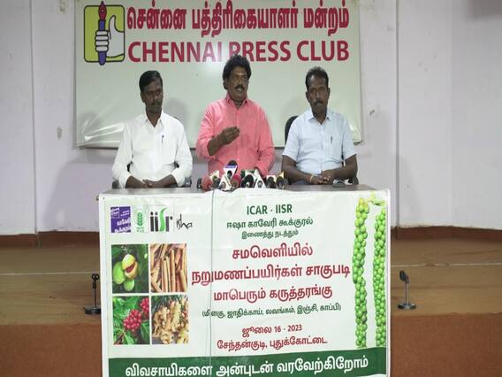 காவேரி கூக்குரல் இயக்கம் சார்பில் சமவெளியில் நறுமணப்பயிர்கள் சாகுபடி கருத்தரங்கு கூட்டம் புதுக்கோட்டையில் ஜூலை 16-ம் தேதி நடைபெறுகிறது. காவேரி கூக்குரல் இயக்கம் மற்றும் இந்திய நறுமணப்பயிர்கள் ஆராய்ச்சி நிலையம் (ICAR – IISR) இணைந்து நடத்தும் சமவெளியில் நறுமணப்பயிர்கள் சாகுபடி குறித்த மாபெரும் கருத்தரங்கு வரும் ஜூலை 16-ம் தேதி புதுக்கோட்டை மாவட்டத்தில் நடைபெற உள்ளது. இதில் தமிழ்நாடு முழுவதும் இருந்து ஆயிரத்திற்கும் மேற்பட்ட விவசாயிகள் திரளாக பங்கேற்க உள்ளனர். இது தொடர்பாக நேற்று (ஜூலை 14) சென்னை பிரஸ் கிளப்பில் காவேரி கூக்குரல் இயக்கத்தின் தமிழக கள ஒருங்கிணைப்பாளர் தமிழ்மாறன் செய்தியாளர்களை சந்தித்தார். அப்போது பேசிய அவர், “இக்கருத்தரங்கில் சமவெளியில் மிளகு, ஜாதிக்காய், லவங்கம், காப்பி, சர்வ சுகந்தி, இஞ்சி போன்ற பயிர்களை வெற்றிகரமாக பயிர் செய்துள்ள விவசாயிகளும், இந்திய நறுமணப்பயிர்கள் ஆராய்ச்சி நிலையத்தை (ICAR – IISR) சேர்ந்த விஞ்ஞானிகள் டாக்டர். கண்டியண்ணன் மற்றும் டாக்டர். முகமது பைசல் பீரன் ஆகியோர் கலந்து கொண்டு சமவெளியில் நறுமணப்பயிர்கள் சாகுபடி உத்திகள், அதிக மகசூல் எடுக்கும் வழிமுறைகள், மதிப்புக்கூட்டுதல் போன்றவற்றை விளக்க உள்ளார்கள்.