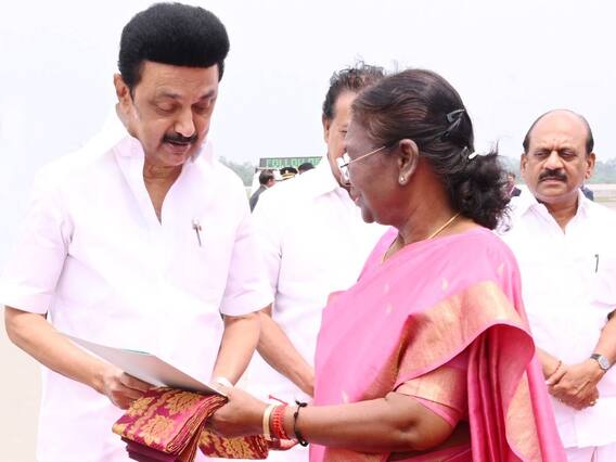இந்திய கடல்சார் பல்கலைக்கழகத்தில் நடைபெற்ற பட்டமளிப்பு விழாவில் கலந்துகொண்டு, டெல்லி புறப்பட்டுச் சென்ற இந்தியக் குடியரசுத் தலைவர் திரவுபதி முர்முவை, தமிழ்நாடு முதலமைச்சர் மு.க.ஸ்டாலின் சென்னை விமான நிலையத்தில் இன்று (27-10-2023) சந்தித்து நீட் விலக்கு மசோதா குறித்து கடிதம் வழங்கினார்.