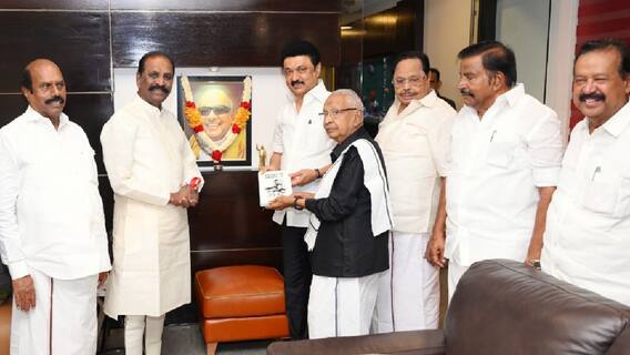 கலைஞர் நூற்றாண்டு நிறைவை முன்னிட்டு கவிஞர் வைரமுத்து தொகுத்த 'கலைஞர் 100 கவிதைகள் 100' என்ற நூலை முதலமைச்சர் மு.க.ஸ்டாலின் வெளியிட்டார்.