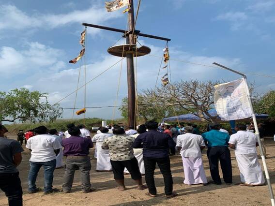 ராமேசுவரத்தில் இருந்து நேற்று பகல் 11 மணி அளவில் புறப்பட்ட இந்த 4 படகுகளும் மதியம் 2 மணிக்கு கச்சத்தீவை சென்றடைந்தன.. தொடர்ந்து கச்சத்தீவில் உள்ள புனித அந்தோணியார் ஆலயத்தில் நேற்று மாலை 5 மணியளவில் இலங்கையின் நெடுந்தீவு பங்குத்தந்தை வசந்தன், அந்தோணியாரின் திருஉருவம் பதித்த கொடியை இருநாட்டு பக்தர்கள் முன்னிலையில் ஏற்றினார்.