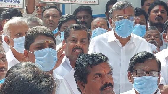 தருமபுாி நகராட்சி அலுவலகம் முன்பு கே.பி.அன்பழகன் தலைமையில் திமுக அரசை கண்டித்து கண்டன ஆா்ப்பாட்டம். இந்த ஆர்ப்பாட்டத்தில் பேசிய பாப்பிரெட்டிபட்டி சட்டமன்ற உறுப்பினர் ஏ.கோவிந்தசாமி, அதிமுகவின் முன்னாள் அமைச்சர்களை பழிவாங்க வேண்டும் என்பதற்காகவே திமுக அரசு பொய் வழக்குகளை போட்டு பயமுறுத்தி வருகிறது. மு.க.ஸ்டாலின் எதிர்க் கட்சியாக இருந்தபோது அதிமுக அரசை விமர்சனம் செய்து பேசினார் என கூறி, திமுக தலைவர் தமிழக முதல்வர் மு.க. ஸ்டாலின் குரல் போல் பேசினார்.
