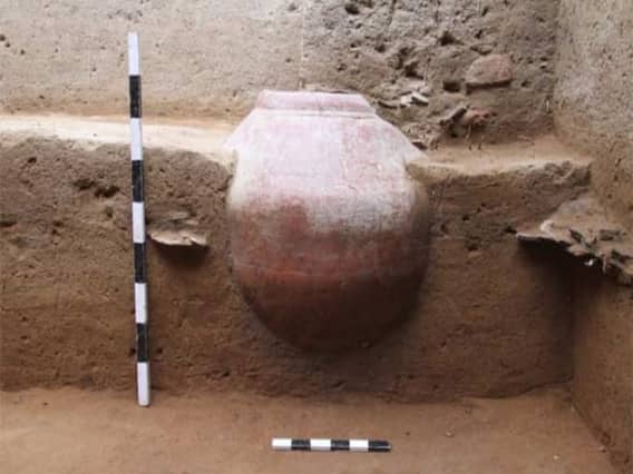 இந்நிலையில் கீழடியில், 2 அடி உயரமுள்ள தானிய கொள்கலன் கண்டுபிடிக்கப்பட்டுள்ளதாக தகவல் வெளியாகியுள்ளது. 348 செ.மீ நீளத்தில் சிவப்பு நிற ஜாடி வடிவ மண்பாண்டம் கிடைத்துள்ளது. கழுத்துப்பகுதி இல்லாத, வாய்ப்பகுதி உட்புறம் மடிந்த நிலையில் உள்ள இதன் சுவர் 2 செ.மீ., தடிமனுடன் உள்ளது. இதன் மைய உள்பகுதி, 30 செ.மீ. சுற்றளவுடன் உள்ளது.