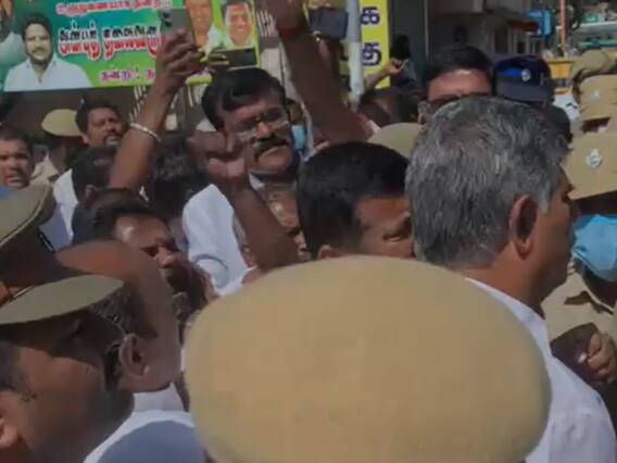 இந்நிலையில் அவர்கள் அனைவரையும் காவல்துறையினர் திரும்பி செல்ல வலியுறுத்தினர். எனினும் அவர்கள் அதற்கு ஒத்துழைப்பு அளிக்கவில்லை. இதன்காரணமாக காவல்துறையினர் அமல் கந்தசாமி, அம்மன் அர்ச்சுனன், செ.தமோதரன், கந்தசாமி, பி.ஆர்.ஜி.அருண்குமார், ஏ.கே.செல்வராஜ் ஆகிய 6 எம்.எல்.ஏக்களை கைது செய்துள்ளனர்.