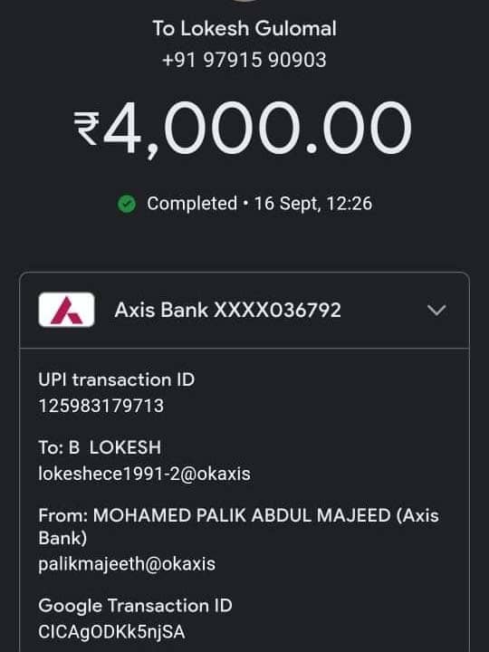 பலர் இலவசமாக இரத்தம் தானம் செய்ய முன்வந்துள்ளனர் ஆனாலும் சிகிச்சைக்கான இரத்தம் போதவில்லை. எப்படியாவது ரத்தம் ஏற்பாடு செய்து, அப்துல்மஜீத்தை காப்பாற்றி விட வேண்டும் என பல்வேறு வகையில் ரத்தம் வழங்குபவர்கள் குறித்து கேட்டு வந்தனர். அப்போது கார்த்திக் என்ற நபர் மூன்று யூனிட் இரத்தம் ஏற்ப்பாடு செய்து தருவதாக கூறி ஒரு யூனிட்டுக்கு 2000 என்ற கணக்கில் மூன்று யூனிட்க்கு ரூ. 6000 Google Pay (9791590903) உடனடியாக போட சொன்னான். ரத்தம் கிடைக்காத பட்சத்தில் ஒருவர் நல்ல மனித நேயத்தடன், பணம் வாங்கினாலும், ரத்தம் வழங்குவதற்கு சம்மதம் தெரிவித்துள்ளார் என அப்தல்மஜீத் குடும்பத்தினர் கார்த்திக்கை நம்பி, 6000 போட்டுள்ளனர்.