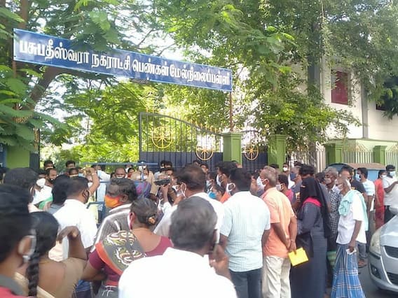 150 தடுப்பூசி மட்டுமே உள்ள நிலையில் 700 நபர்கள் தடுப்பூசி போட்டுக்கொள்ள குவிந்ததால், சுகாதார அலுவலர்கள் செய்வதறியாது தடுமாறினர். தடுப்பூசி பற்றாக்குறையை கண்டித்து அங்குள்ள சுகாதார அலுவலர்கள் முற்றுகையிட்ட பொதுமக்கள் அறிவிக்கப்பட்டுள்ள 150 தடுப்பூசிக்கு எத்தனை பேருக்கு டோக்கன் கொடுத்துள்ளீர்கள். இன்றைய (01-06-21) தேதியில் தடுப்பூசி போட்டுக் கொள்ள டோக்கன் வழங்கப்பட்டுள்ள நிலையில் தற்போது, தடுப்பூசி இல்லை முடிந்துவிட்டது என எப்படி கூறுகிறீர்கள்? என சரமாரியாக கேள்வி கேட்டனர்.