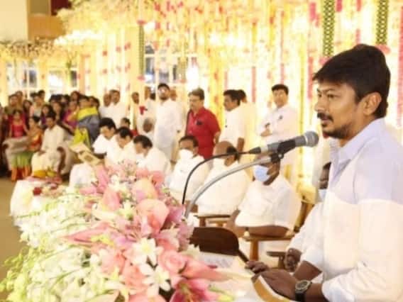 இதேபோல் தனது வீட்டுக்கு அவரது மனைவி கிருத்திகா மருமகளாக வந்தவுடன் தனது அம்மா தன்னுடைய கோபத்தை முற்றிலுமாக கைவிட்டுவிட்டார் எனவும் பேசினார். அதோடு இதனை அப்பா, அதாவது முதல்வர் ஸ்டாலின் ஏற்றுக்கொள்வாரா என்று தெரியவில்லை என்று கூறியதும் முதல்வரும் கூடியிருந்தவர்களும் சிரித்தனர். மனதில் தோன்றியதை ஒளிவு மறைவின்றி உதயநிதி பேசியதை கேட்டு திருமண விழா மேடையில் இருந்தவர்களும், வாழ்த்த வந்தவர்களும் கரவொலி எழுப்பி பாராட்டினர்.