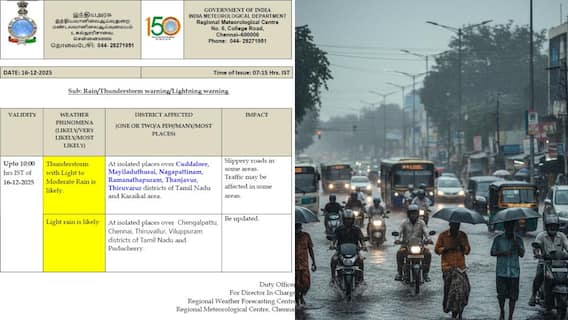 தமிழகத்தில் இன்று (16-12-2025) காலை 10 மணி வரை 10 மாவட்டங்களில் மழைக்கு வாய்ப்பு இருப்பதாக வானிலை ஆய்வு மையம் தெரிவித்துள்ளது. தமிழ்நாட்டைப் பொறுத்தவரை கடலூர், மயிலாடுதுறை, நாகப்பட்டினம், ராமநாதபுரம், தஞ்சாவூர் மற்றும் திருவாரூர் ஆகிய ஆறு மாவட்டங்களில் இன்று காலை 10 மணி வரை மிதமான மழை பெய்யும் என வானிலை ஆய்வு மையம் தெரிவித்துள்ளது.