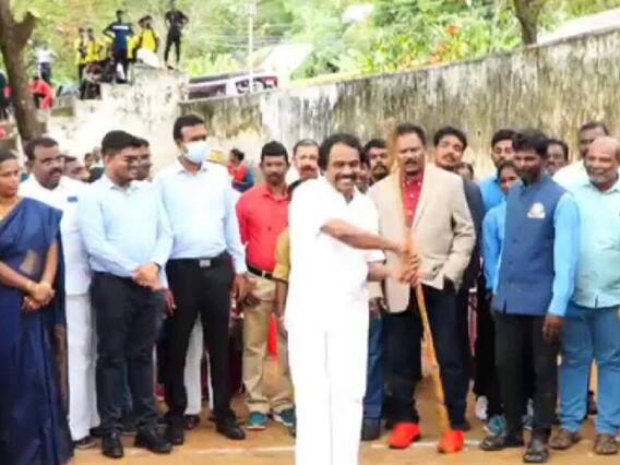 சிலம்பம் சுற்றிய அமைச்சர்: