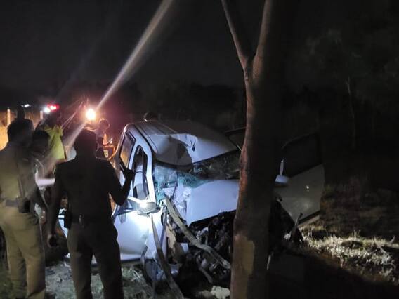இன்று காலை 3.30 மணியளவில் எதிர்பாராத விதமாக கார் கட்டுப்பாட்டை இழந்து அருகில் இருந்த மரத்தின் மீது மோதியதில் காரை ஓட்டிய கிருஷ்ணகுமார் (40) அவரது மகள் வருணா (10), மாமியார் இந்திராணி (67) ஆகிய மூன்று நபர்கள் சம்பவ இடத்திலேயே பலத்த காயம் ஏற்பட்டு உயிரிழந்து விட்டனர். மேலும் காயம் ஏற்பட்டு சுதர்சன் (15) மற்றும் அவரது மனைவி மோகனா (40) இருவரும் கரூரில் உள்ள தனியார் மருத்துவமனைக்கு சிகிச்சைக்காக அனுப்பி வைக்கப்பட்டுள்ளனர்.