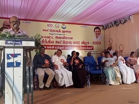 அப்போது ஆட்சியர் தங்கவேல், கூட்டுறவுத் துறை மூலம் செயல்படுத்தப்படும் திட்டங்கள் குறித்து பேசினார். நகைக்கடனில் துவங்கி தற்போது கல்விக் கடன்கள் வரை கொடுக்கும் அளவிற்கு கூட்டுறவுத் துறை செயல்பட்டு வருகிறது. கூட்டுறவு சங்கங்கள் வளர வேண்டுமானால் கடன்களை பெற்றும், அதனை திருப்பி தர வேண்டும். அப்போது தான் கூட்டுறவு சங்கங்கள் நல்ல முறையில் செயல்படும் என தெரிவித்தார். அனைவரும் கூட்டுறவு சங்கங்களுடன் தொடர்பில் தொடர்ந்து இருக்க வேண்டும் என வேண்டுகோள் விடுத்தார்.