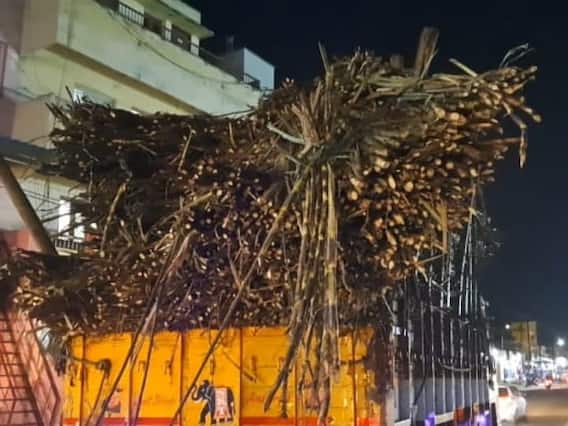 புகளூரில் உள்ள தனியார் சர்க்கரை ஆலைக்கு ஈரோடு மாவட்டம் ,கரூர் மாவட்ட பகுதியில் இருந்து லாரிகள் மற்றும் இரட்டை டிப்பருடன் கூடிய டிராக்டர்கள் மூலம் கரும்புகள் கொண்டு செல்லப்பட்டு வருகிறது. இந்நிலையில் ஈரோடு மாவட்டத்திலிருந்து லாரியில் அளவுக்கு அதிகமாக கரும்பு பாரங்களை ஏற்றிக் கொண்டு புகளூர் சர்க்கரை ஆலைக்கு கொடுமுடி -புகளூர் செல்லும் சாலையில் லாரி வேகமாக சென்று கொண்டிருந்தது.
