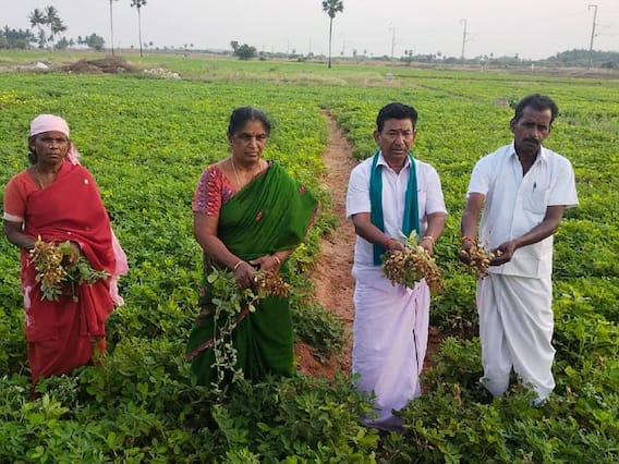 கரூர் மாவட்டத்தில் கடந்த 15 ஆண்டு காலமாக போதிய மழை இல்லாத காரணத்தினால் விவசாயம் கடும் பாதிப்புக்குள்ளானது. இந்த நிலையில் இந்தாண்டு இரவை பாசனம் மூலமாக எண்ணெய் வித்து பயிர்களான நிலக்கடலை, எள், சூரியகாந்தி, மக்காச்சோளம் ஆகியவற்றை பல்லாயிரம் ஏக்கரில் விவசாயிகள் பயிரிட்டனர். மயில் மற்றும் கால்நடை தாக்குதலில் இருந்து பயிர்களை விவசாயிகள் பாதுகாத்து வந்த நிலையில் அறுவடை காலம் நெருங்கிவிட்டாலும் ஆட்கள் கிடைக்காததால் ஆயிரக்கணக்கான ஏக்கர் நில கடலை நிலத்திலேயே முளைக்கும் தருவாயில் உள்ளது.