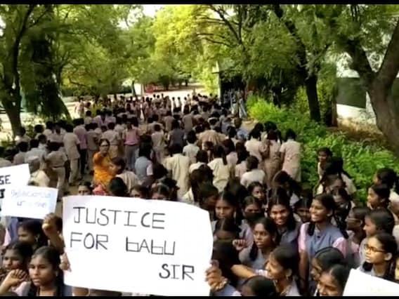 கரூரில் 9ம் வகுப்பு மாணவிக்கு பாலியல் தொல்லை கொடுத்ததாக அரசு பள்ளி ஆசிரியர் கைது செய்யப்பட்ட விவகாரத்தில், மாணவியின் பொய் புகாரில் ஆசிரியர் கைது செய்யப்பட்டுள்ளார் என்றும், அவரை விடுதலை செய்யக் கோரி மாணவ, மாணவிகள் 300க்கும் மேற்பட்டோர் உள்ளிருப்பு போராட்டம் நடத்தினர்.