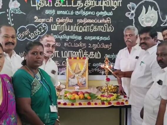 அதேபோல் சிந்தலவாடி ஊராட்சி புனவாசிப்பட்டி அந்தரப்பட்டி சாலையில் 5.80 லட்சம் மதிப்பில் சிறுபாலம் அமைக்கும் பணிக்கும் பூமி பூஜையிட்டு பணிகளை துவக்கி வைத்தார். முன்னதாக குளித்தலை நகராட்சியில் மாரியம்மன் கோவில் ஊராட்சி ஒன்றிய நடுநிலைப் பள்ளியில் எம்எல்ஏ தொகுதி மேம்பாட்டிலேயே நிதியிலிருந்து ரூபாய் 21 லட்சம் மதிப்பில் கட்டப்பட்ட புதிய இரண்டு வகுப்பறை கட்டிடங்களை பள்ளி மாணவ மாணவிகளின் பயன்பாட்டிற்காக திறந்து வைத்து குத்து விளக்கு ஏற்றினார்.
