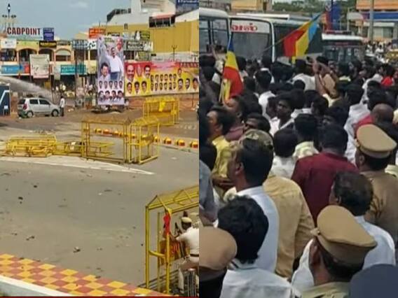 இந்த முற்றுகை போராட்டத்தை தொடர்ந்து அன்புமணி ராமதாஸ் உள்ளிட்ட பாமக தொண்டர்கள் கைது செய்யப்பட்டனர். இதனை கண்டித்து காவல்துறையினர் மீது போராட்டக்காரர்கள் கல் எறிந்தனர். அவர்களை விரட்ட போலீசார் கண்ணீர் புகை குண்டு வீசியதாக கூறப்படுகிறது. மேலும் தண்ணீர் பீய்ச்சி அடித்தும், தடியடி நடத்தியும் கூட்டத்தை கலைத்தனர். முன்னதாக முற்றுகை போராட்டம் நடைபெறுவதையொட்டி அப்பகுதியில் கடைகள் அடைக்கப்பட்டிருந்தது. அன்புமணி கைது செய்யப்பட்ட வாகனத்தை முற்றுகையிட்டனர். மேலும் தண்ணீர் பாட்டில், கொடிக்கம்பம் உள்ளிட்டவை காவல்துறையினர் மேல் எறிந்தனர். இதனால் அப்பகுதியே போர்க்களம் போல காட்சியளிக்கிறது.