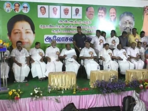 முன்னதாக கூட்டத்தில் பங்கேற்க வந்த ஓ.பன்னீர்செல்வத்துக்கு தொண்டர்கள் உற்சாக வரவேற்பு அளித்தனர். ஓபிஎஸ் வருகைக்கு முன்பு போடப்பட்ட எம்.ஜி.ஆர் பாடல்களுக்கு கட்சித் தொண்டரான முதியவர் ஒருவர் குத்தாட்டம் போட்டார் . மேலும் ஓ.பன்னீர்செல்வத்தை வரவேற்று கட்சித் தொண்டர்கள் மாலை மற்றும் சால்வைகள் அணிவித்தனர். அப்போது எம்ஜிஆர் தோற்றம் கொண்ட தொண்டர் ஒருவர் சால்வை அணிவிக்க வந்தபோது அந்த சால்வையை கையில் வாங்கி ஓ.பன்னீர்செல்வம் அவருக்கே திருப்பி அணிவித்தார்.