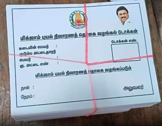 இந்நிலையில் சென்னை மாவட்டத்தில் உள்ள அனைத்து வட்டங்கள், செங்கல்பட்டு மாவட்டத்தில் உள்ள தாம்பரம், பல்லாவரம், வண்டலூர் ஆகிய 3 வட்டங்களில் முழுமையாகவும், திருப்போரூர் வட்டத்தில் மூன்று வருவாய் கிராமங்கள், காஞ்சிபுரம் மாவட்டத்தில் குன்றத்தூர் வட்டம் முழுமையாகவும், ஸ்ரீபெரும்புதூர் வட்டத்தில் மூன்று வருவாய் கிராமங்கள், திருவள்ளூர் மாவட்டம் பொன்னேரி, கும்மிடிப்பூண்டி, ஆவடி, பூவிருந்தவல்லி, ஊத்துக்கோட்டை மற்றும் திருவள்ளூர் ஆகிய ஆறு வட்டங்களில் நிவராணத்திற்கான டோக்கன்கள் நாளை முதல் வழங்கப்பட உள்ளது.