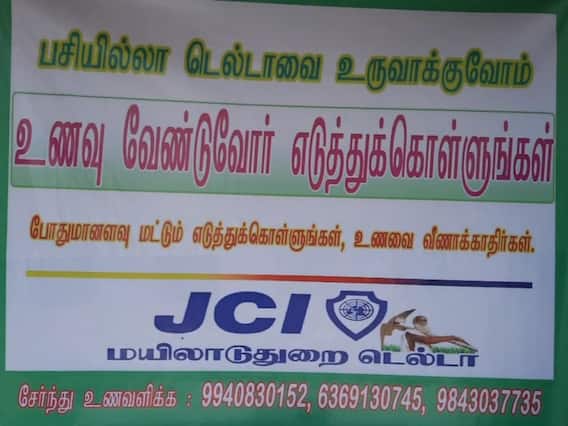 மயிலாடுதுறையில் கொரோனா பொதுமுடக்கத்தால் வாழ்வாதாரம் இழந்துள்ள ஏழை மக்கள் பயன்பெறும் வகையில் சமூக நல அமைப்பு சார்பில் தேவைப்படுவோர் எடுத்துச்செல்லும் வகையில் உணவுப் பொட்டலங்கள் வைக்கப்பட்டுள்ளன. பொதுமுடக்கத்தால் வாழ்வாதாரம் இழந்துள்ள ஏராளமான ஏழை மக்கள் பயன்பெறும் வகையில் ஜேசிஐ மயிலாடுதுறை மற்றும் டெல்டா சங்கம் சார்பில் ஒருவேளை உணவு வழங்க ஏற்பாடு செய்யப்பட்டுள்ளது.