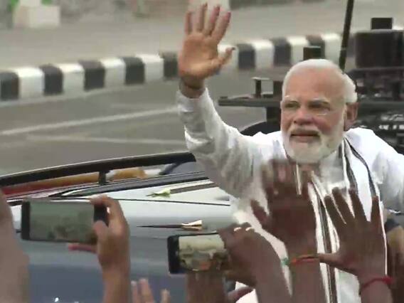 அப்போது தன்னுடைய காரிலிருந்து நின்றபடியே பிரதமர் மோடி கை அசைத்து பாஜக தொண்டர்கள் அளித்த உற்சாக வரவேற்பை ஏற்றார். அவர் காரில் நின்று வரவேற்றதை பாஜக தொண்டர்கள் மகிழ்ச்சி வெள்ளத்தில் இருந்தனர்.
