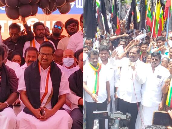 பிரதமர் மோடி இன்று சென்னை வருகையை ஒட்டி, திமுக கூட்டணி கட்சிகளான காங்கிரஸ் மற்றும் தமிழக வாழ்வுரிமை கட்சி ஆகியவைகள் கருப்புக்கொடியோடு போராட்டம் நடத்தி வருகின்றன.