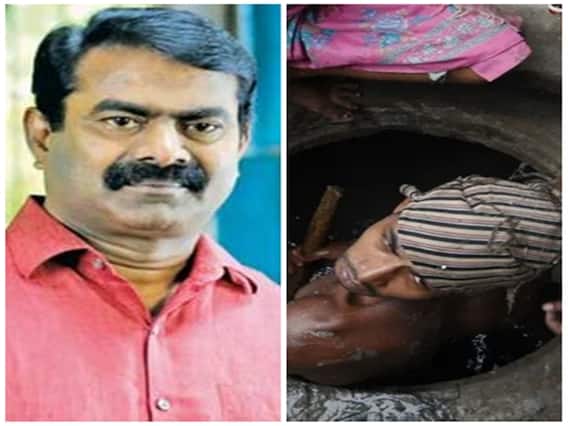 கழிவுநீர்த் தொட்டிகளைச் சுத்தம் செய்ய இயந்திரங்கள் பயன்படுத்துவதை உறுதி செய்வதுடன், தூய்மைப் பணியில் ஈடுபடுவோருக்குச் செயற்கை சுவாசக் கருவிகள் பொருத்தப்பட்ட பாதுகாப்பு உடைகள் வழங்க வேண்டும் என்று நாம் தமிழர் கட்சியின் ஒருங்கிணைப்பாளர் சீமான் வலியுறுத்தியுள்ளார்.