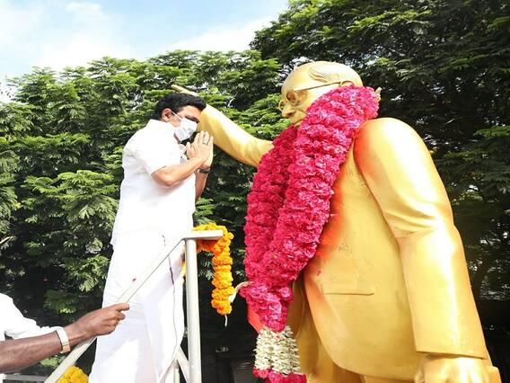 அண்ணல் அம்பேத்கரின் 130-வது பிறந்தநாளை முன்னிட்டு திமுக தலைவர் மு.க ஸ்டாலின், சென்னை கோயம்பேட்டில் உள்ள அம்பேத்கர் சிலைக்கு மாலை அணிவித்து மரியாதை செலுத்தினார்.