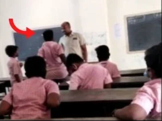 நாமக்கல் மாவட்டம் செல்லப்பம்பட்டியை சேர்ந்தவர் பார்வை மாற்றுத்திறனாளி ஆசிரியர் செல்லப்பன். இவர் புதுச்சத்திரம் அரசு பள்ளியில் வரலாற்று ஆசிரியராக கடந்த 12 வருடங்களாக இந்தப் பள்ளியில் வரலாற்று ஆசிரியராக பணியாற்றி வருகிறார். இந்நிலையில் செப்டம்பர் 30-ம் தேதி மாணவர்களுக்கு வரலாற்று பாடம் நடத்தி வந்தபோது வகுப்பறையில் இருந்த மாணவர்கள் 2 பேர் திரைப்படப் பாடலுக்கு நடனமாடினர். அவரை நடுவிரலை காட்டி கொச்சைப்படுத்தும் விதமாக மாணவர்கள் டிக் டாக் செய்துள்ளனர். இதை வீடியோவில் பதிவு செய்த மாணவர் ஒருவர் வாட்ஸ் அப் குரூப்களிலும் பகிர்ந்திருக்கிறார். இந்த வீடியோ கடந்த நான்கு நாட்களாக வைரலாக பரவி வந்த நிலையில் மாணவர்களின் நடத்தை குறித்து ஆசிரியர் பல முறை தலைமை ஆசிரியர் குனசேகரனிடம் தெரிவித்துள்ளார். ஆனால் இம்முறை மாணவர்களின் ஒழுங்கீன செயல்கள் வீடியோவாக வெளியே வந்துவிட்டதால், இது குறித்து பெற்றோர் ஆசிரியர் கழக உறுப்பினர் கூட்டத்தை கூட்டி தலைமை ஆசிரியர் குனசேகரன் விவாதித்தார்.