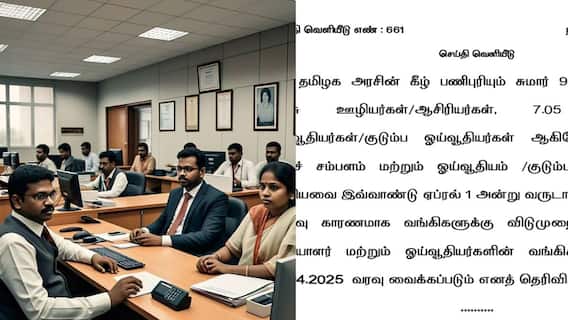 தமிழ்நாட்டில், தமிழ்நாடு அரசு ஊழியர்கள் சுமார் 9.30 லட்சம் பேர் பணி புரிந்து வருகின்றனர். அரசு ஊழியர்களுக்கு ஊதியமானது , மாதத்தின் முதல் நாளான 1 ஆம் தேதி வழங்கப்படும். அதாவது , அரசு ஊழியர்களின் வங்கி கணக்கில் நேரடியாக வரவு வைக்கப்படும். இந்நிலையில், ஏப்ரல் மாதத்தில் 1 ஆம் தேதி ஊதியம் வழங்கப்படாது என தெரிவிக்கப்பட்டுள்ளது. அதற்கு காரணம், வருடாந்திர கணக்கு முடிவு காரணமாக ஏப்ரல் 1 ஆம் தேதி, வங்கிகளுக்கு விடுமுறை அளிக்கப்பட்டுள்ளது. இதன் காரணமாக ஏப்ரல் 1 ஆம் தேதி வரவு வைக்கப்படாது என்றும் ஏப்ரல் 2 ஆம் தேதி வரவு வைக்கப்படும் எனவும் தெரிவிக்கப்பட்டுள்ளது.