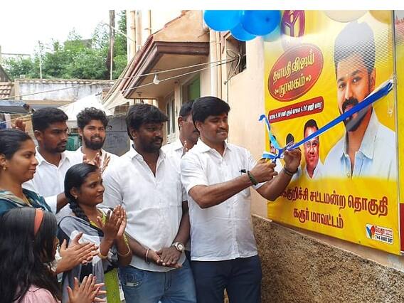 கரூர் மாவட்டம் அரவக்குறிச்சியில் தலைவர்களின் வாழ்க்கை வரலாற்று புத்தகங்களுடன் 600-க்கும் மேற்பட்ட நூல்களுடன் விஜய் நூலகம் திறப்பு விழாவில் பங்கேற்று 10க்கும் மேற்பட்ட பொதுமக்கள் உறுப்பினர்களாக பதிவு செய்து கொண்டனர்.