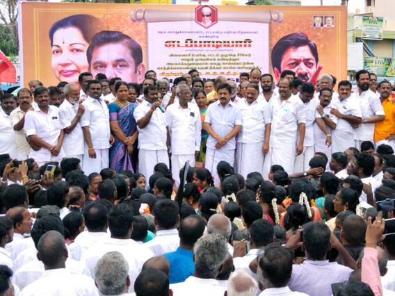 இலாகா இல்லாத அமைச்சர் செந்தில் பாலாஜியை பதவி நீக்கம் செய்யக் கோரியும், அத்தியாவசியப் பொருட்களின் விலை உயர்வு மற்றும் சட்ட ஒழுங்கு பிரச்சனை உள்ளிட்டவற்றை கண்டித்தும், விழுப்புரம் பழையப் பேருந்து நிலைய வளாகத்தில், அதிமுக சார்பில் கண்டன ஆர்ப்பாட்டம் நடைபெற்றது. இந்த ஆர்ப்பாட்டத்தில் பேசிய அதிமுக முன்னாள் அமைச்சரும், மாநிலங்களவை உறுப்பினருமான சி.வி.சண்முகம், “ஜெயலலிதா முதலமைச்சராக இருந்தபோது, ஊழல் குற்றச்சாட்டில் செந்தில் பாலாஜி பதவி நீக்கம் செய்யப்பட்டார். அதனைத் தொடர்ந்து, எடப்பாடி பழனிசாமி முதலமைச்சராக இருந்தபோது, செந்தில் பாலாஜி வீட்டில் சோதனை நடத்தப்பட்டு, பல்வேறு ஆவணங்களை கைப்பற்றி, நீதிமன்றத்தில் வழக்குத் தொடரப்பட்டது.