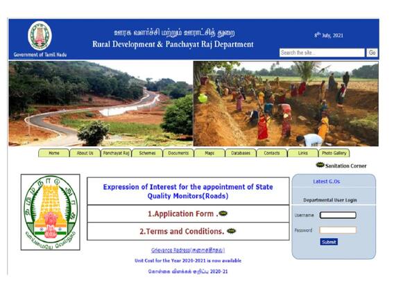 தமிழ்நாடு ஊரக வளர்ச்சி மற்றும் உள்ளாட்சித்துறையின் கீழ் பணிபுரிவதற்கான ஆர்வமும், தகுதியும் உள்ளவர்கள், Tnrd.gov.in என்ற அதிகாரப்புர்வ தளத்திற்கு செல்ல வேண்டும். இதில் experience of interest for state quality monitors ( road) என்பதனை கிளிக் செய்து இதில் உள்ள விபரங்களை எல்லாம் முழுமையாக படித்துக்கொள்ள வெண்டும். பின்னர் அதில் கொடுக்கப்பட்டிருக்கும் application form என்பதனை டவுன் செய்துக்கொள்ள வேண்டும். முக்கியமாக அந்த விண்ணப்பத்தில், பெயர், பிறந்த தேதி, அரசு அலுவலகத்தில் பணிபுரிந்த விபரங்கள், அரசு ஊழியராக இருந்தபொழுது மேற்கொண்ட சாலை,பாலம், தேசிய நெடுஞ்சாலைப் போன்றவற்றின் தகவல்கள் உள்பட அதில் கேட்கப்பட்டுள்ள அனைத்து விபரங்களையும் பூர்த்தி செய்து புகைப்படத்துடன் விண்ணப்பங்களை அஞ்சல் வழியாக அனுப்பி வைக்க வேண்டும்.