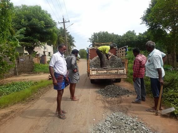 தஞ்சாவூர்: ஏபிபி நாடு செய்தி எதிரொலியாக தஞ்சை மாவட்டம் புது கல்விராயன்பேட்டை சாலையில் இருந்த பள்ளங்களில் ஜல்லிகள் கொட்டப்பட்டு சீரமைப்பு பணிகள் நடந்தது.